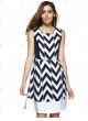 Fashion Zigzag Stripe Fit and Flare Sleeveless Dress For Women